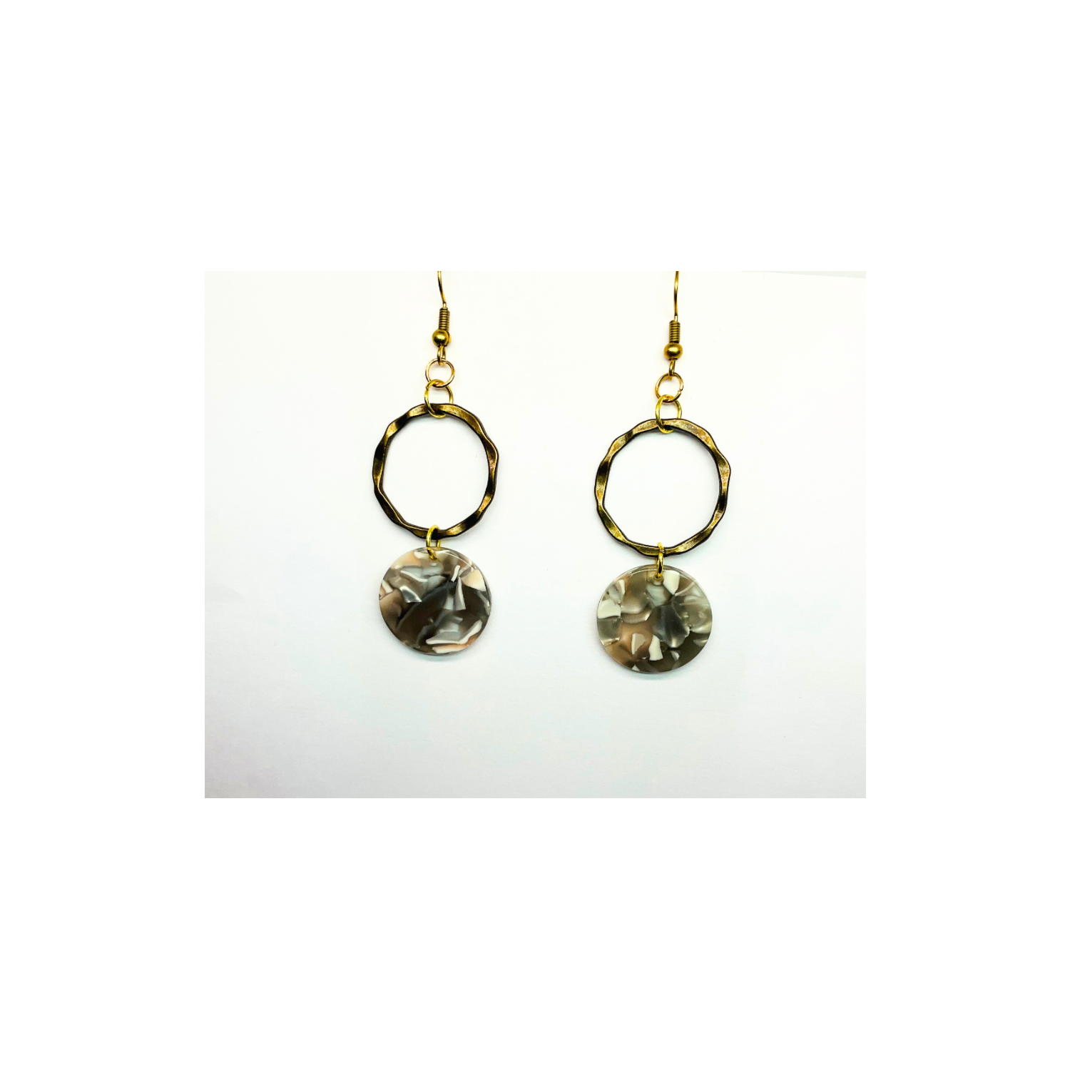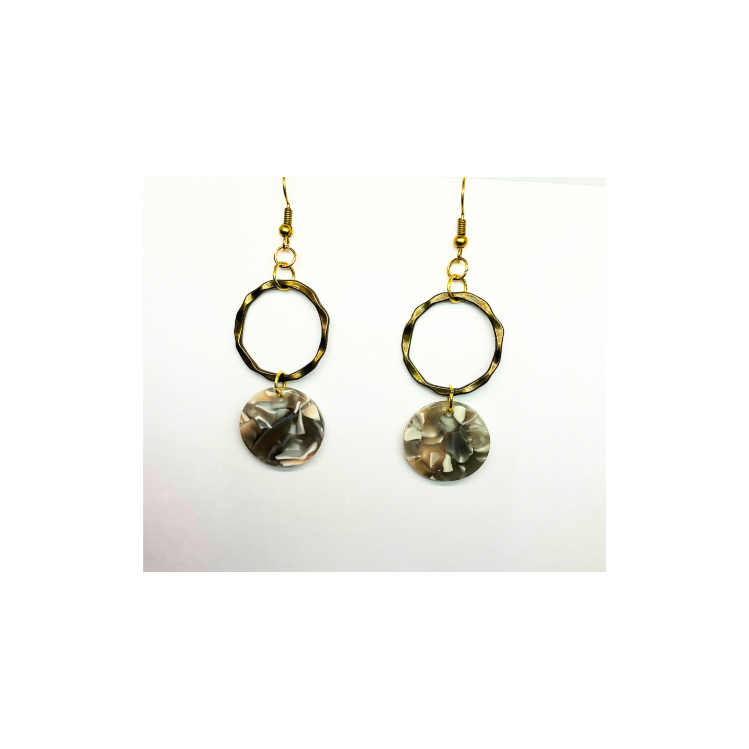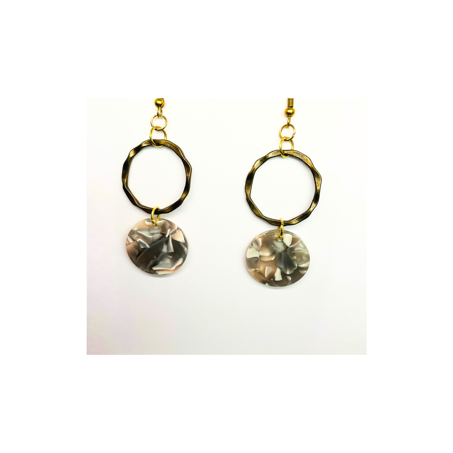 Tortoise Collection Gray and Beige Circle Gold Dangle Earring with Unique Tortoise Shell Design