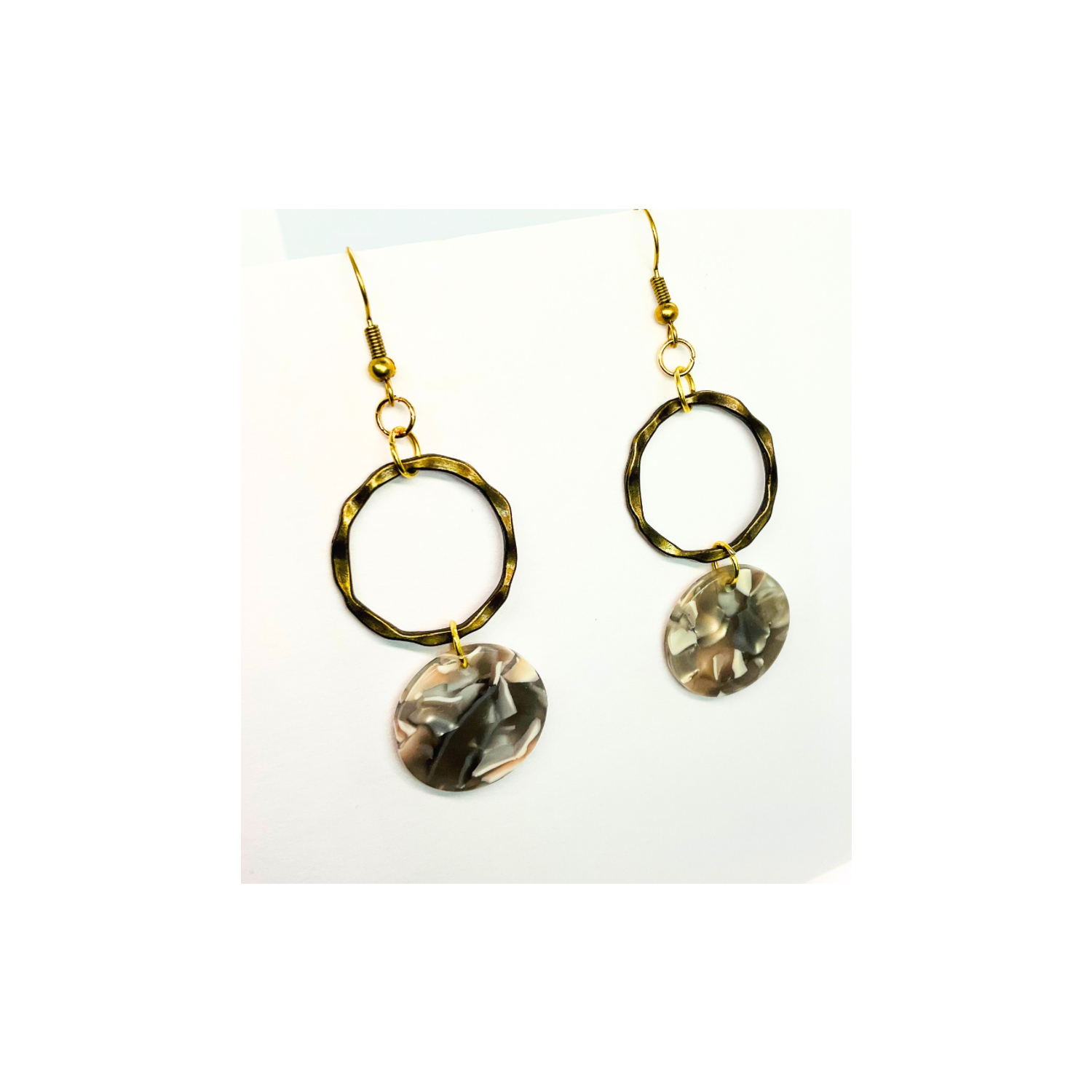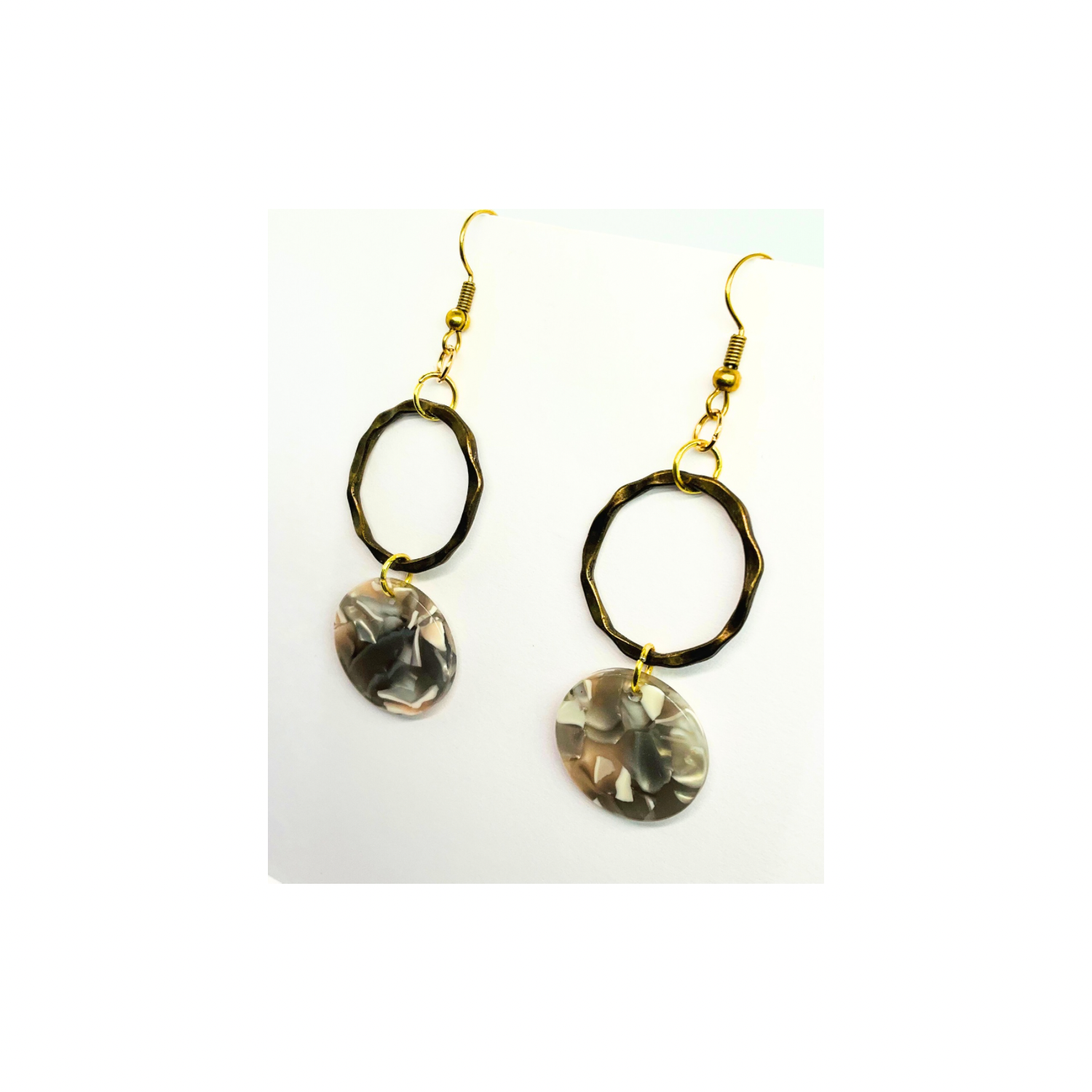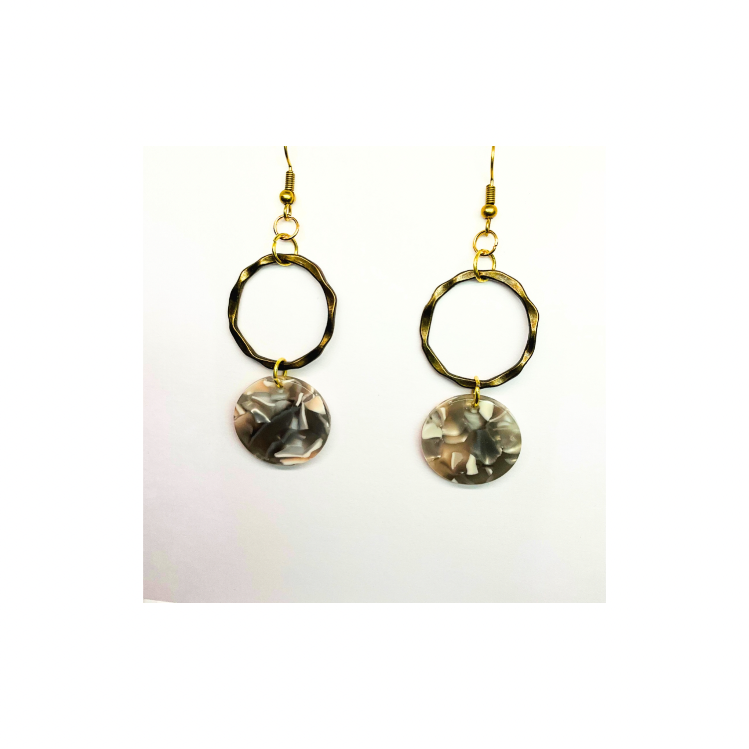 Tortoise Collection Gray and Beige Circle Gold Dangle Earring with Unique Tortoise Shell Design