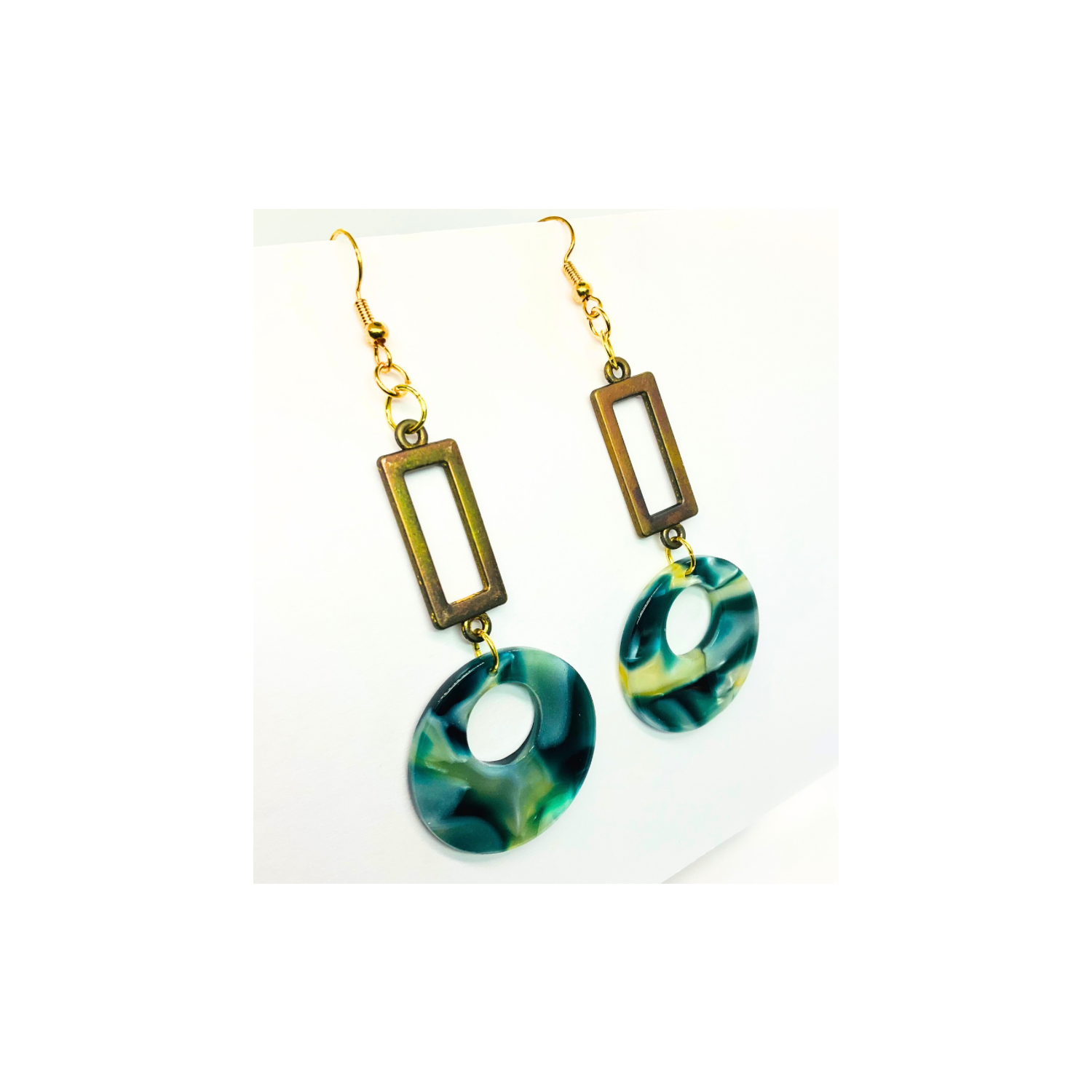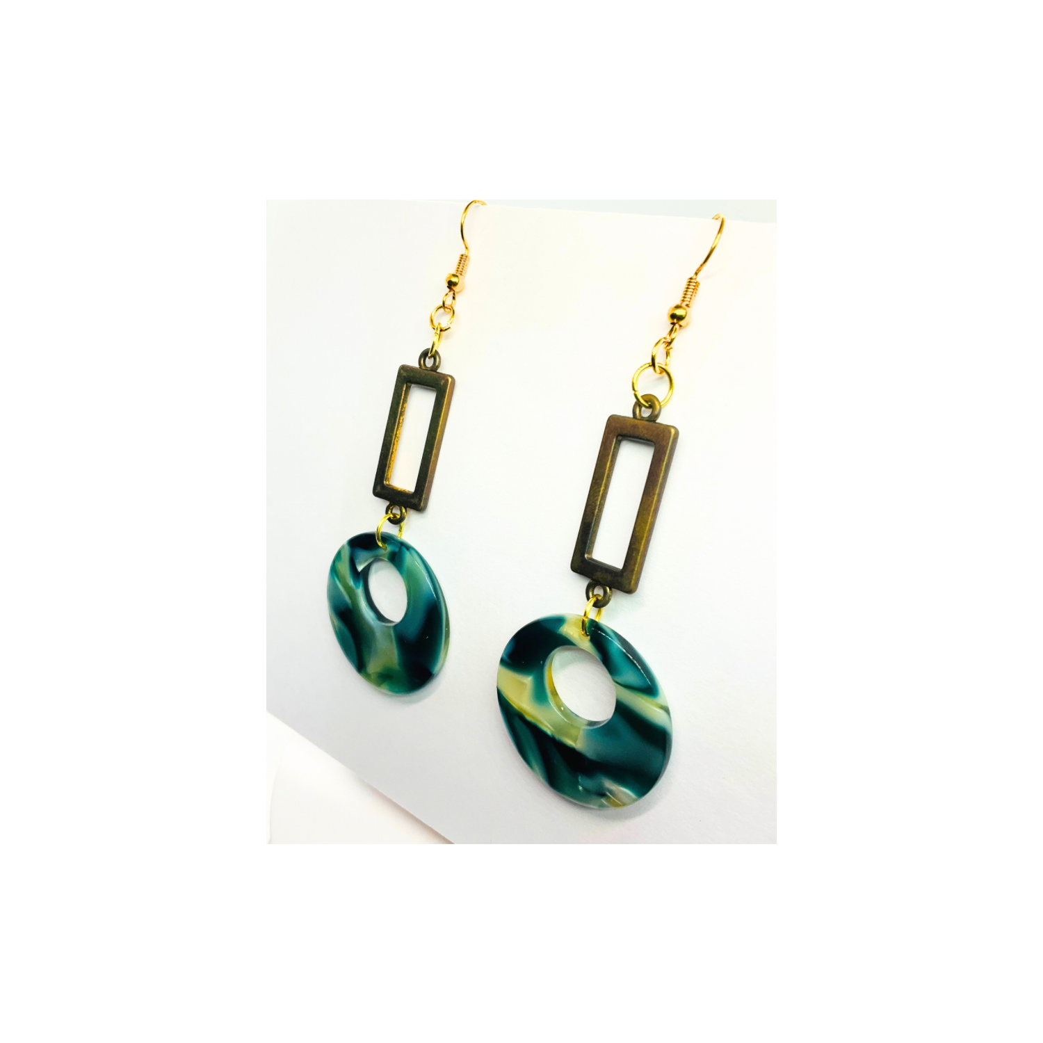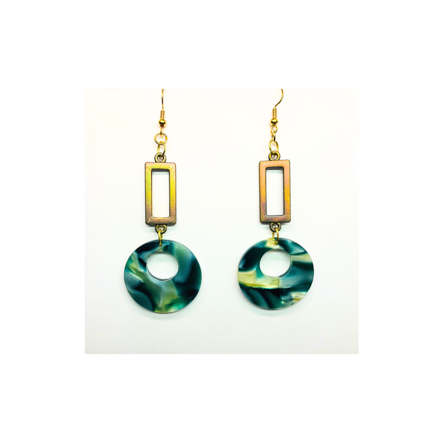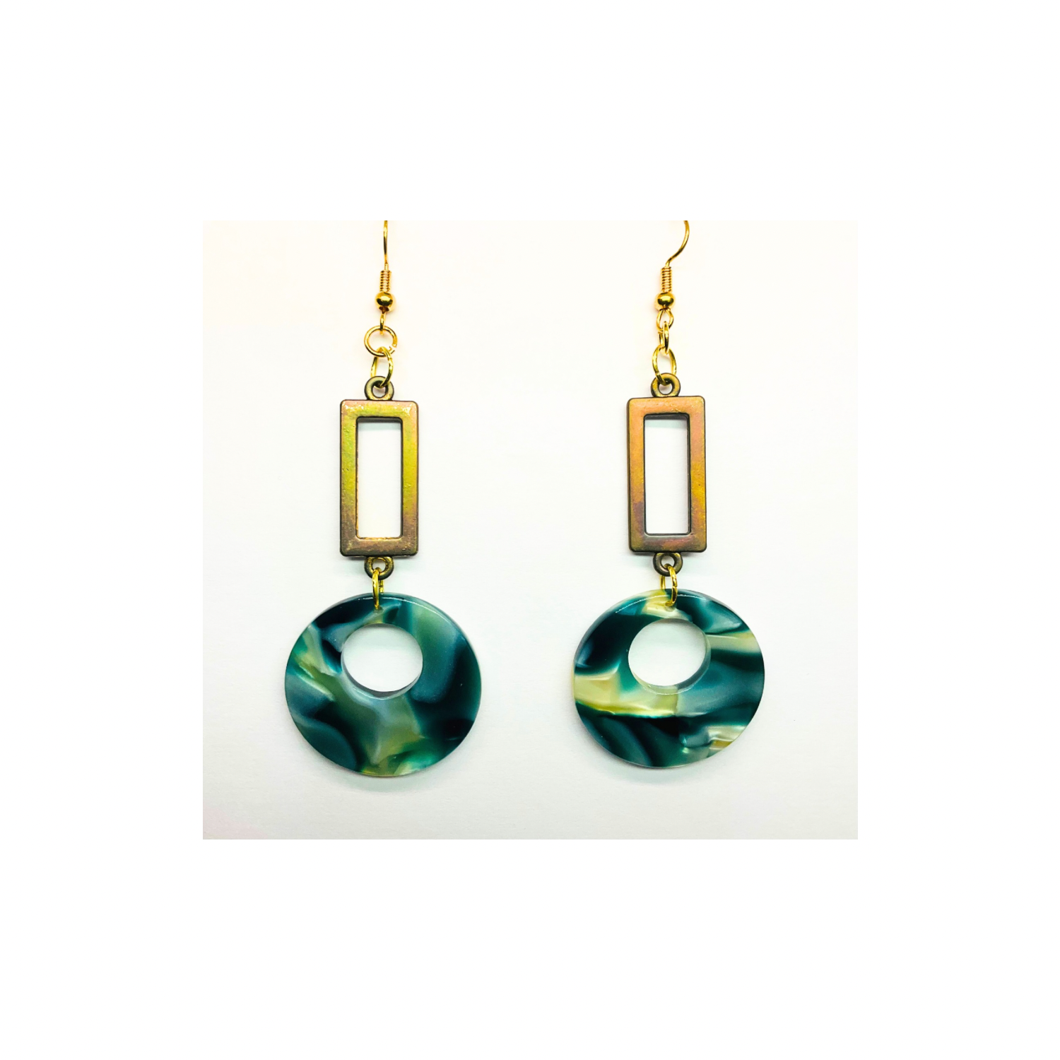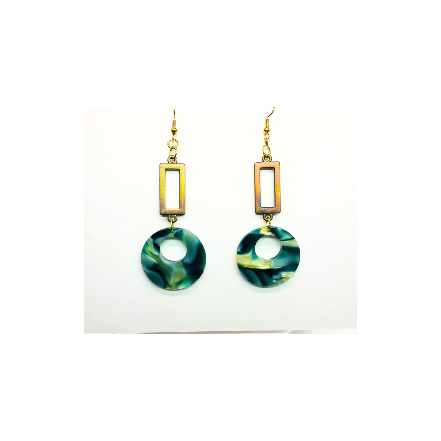 π’ Tortoise Collection Green Circle with Rectangle Earrings