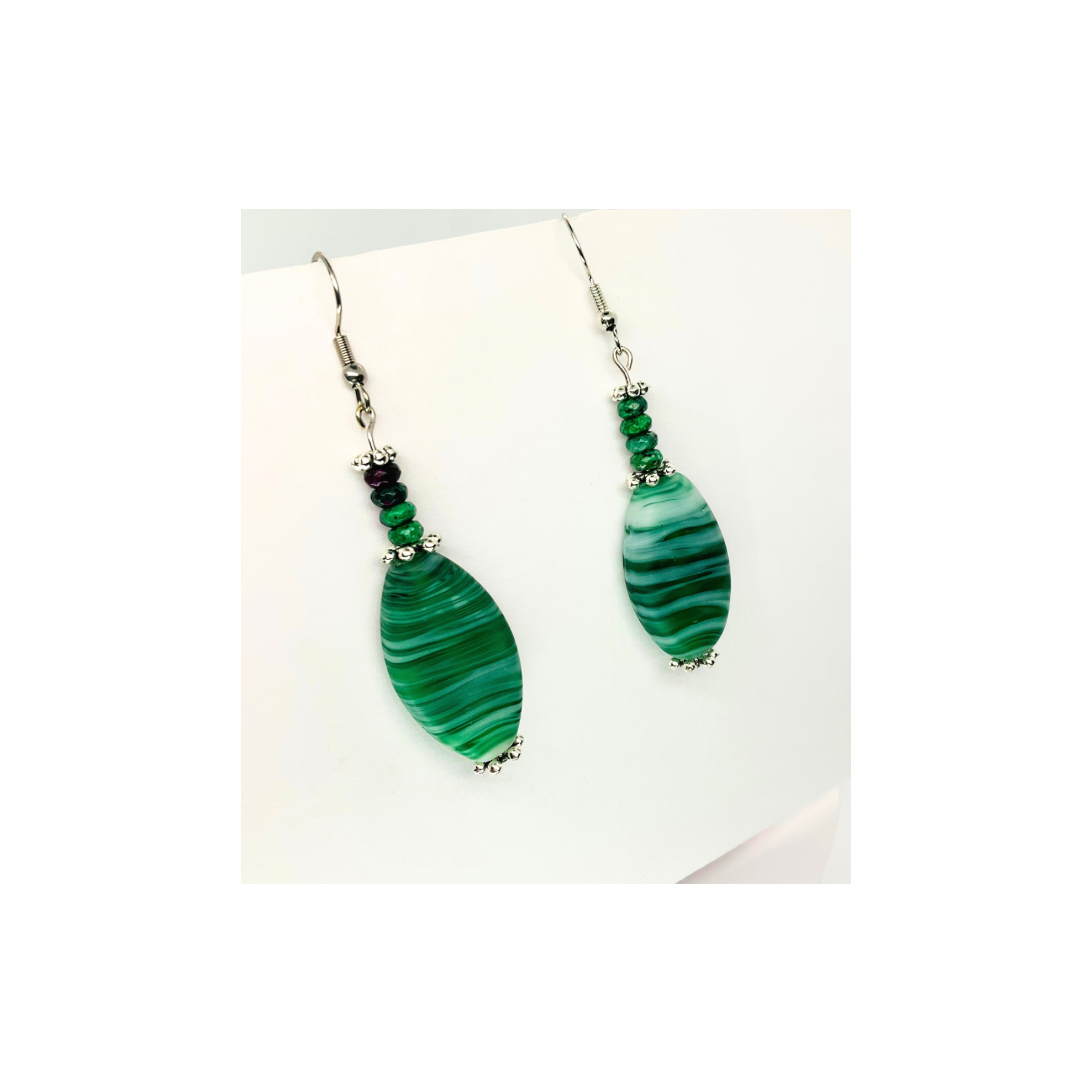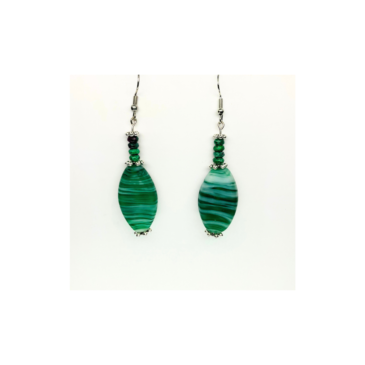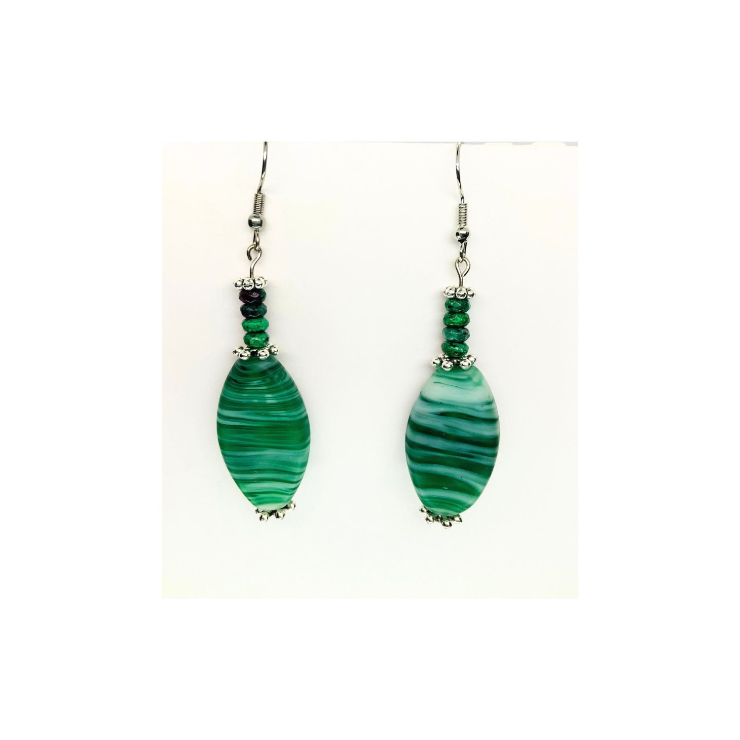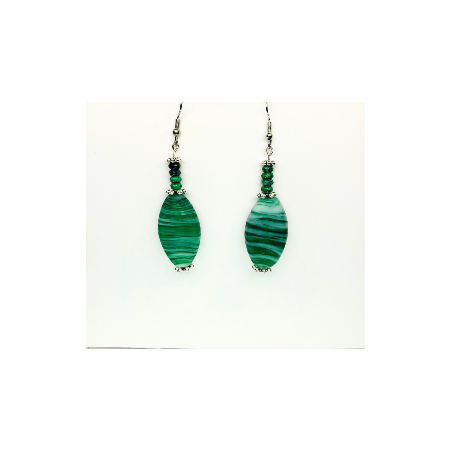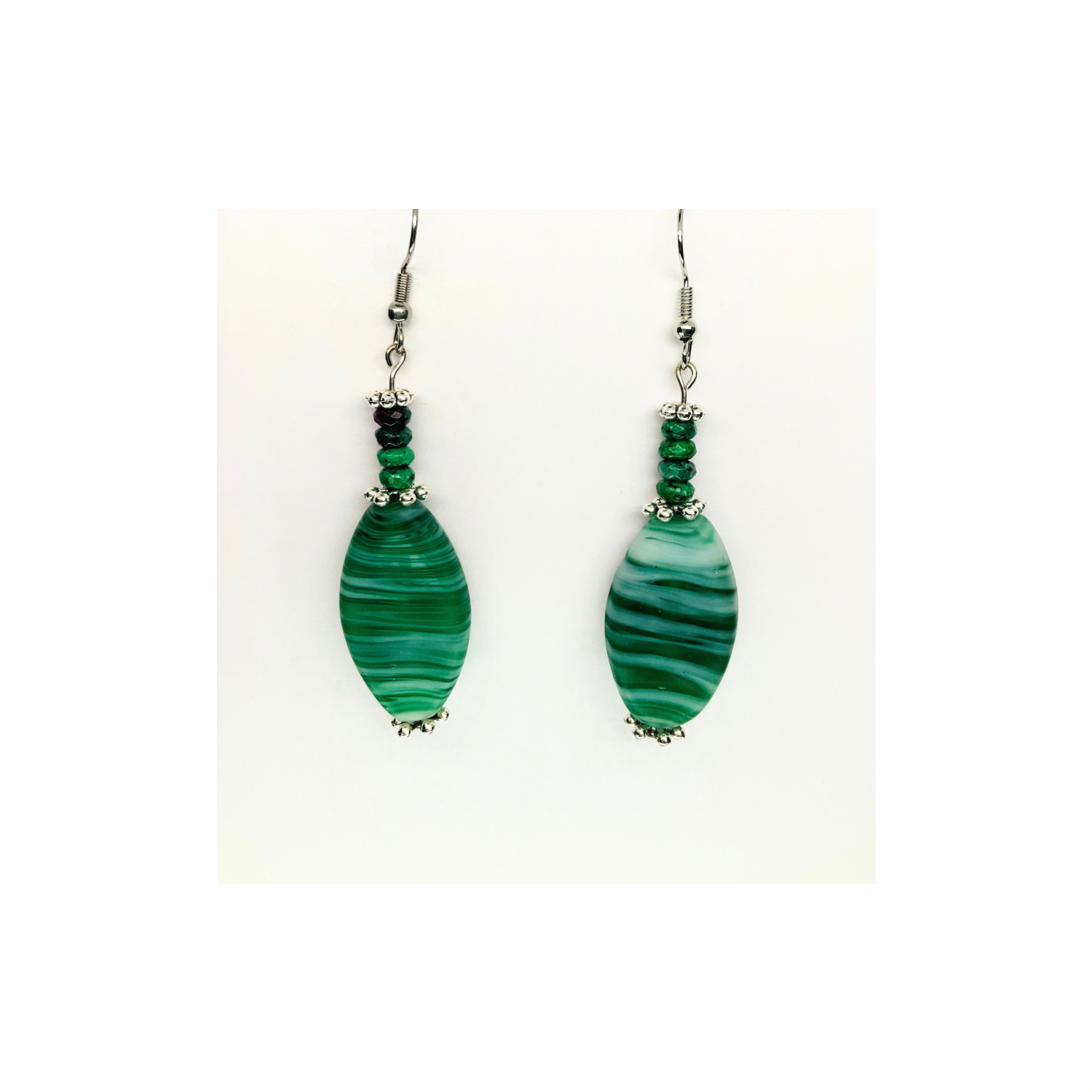 - The earrings showcase a single bead, designed to catch the light beautifully. Their translucency adds depth and charm. The green hue is versatile, complementing a wide range of colors—a great choice for everyday wear or special occasions. Enjoy the timeless beauty of these glass beads.