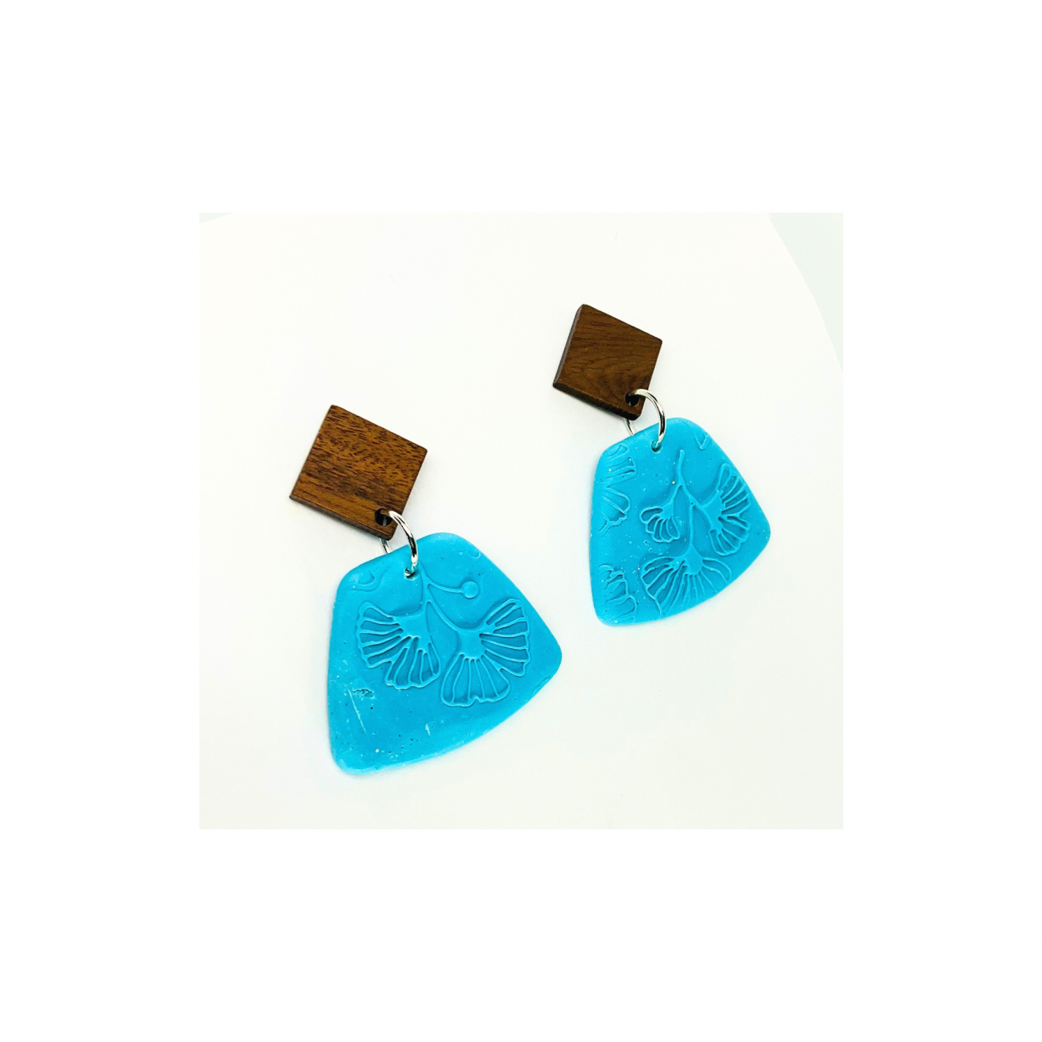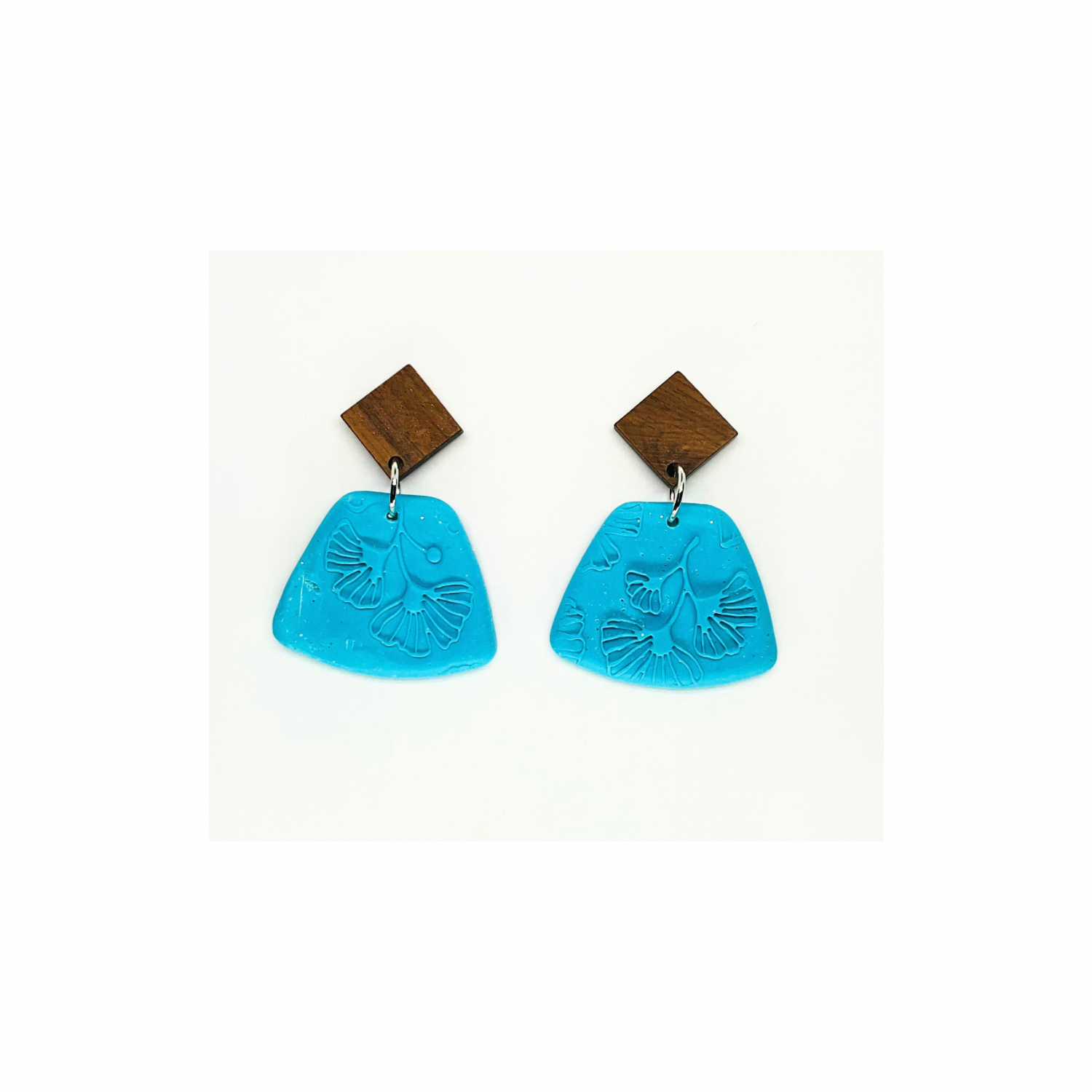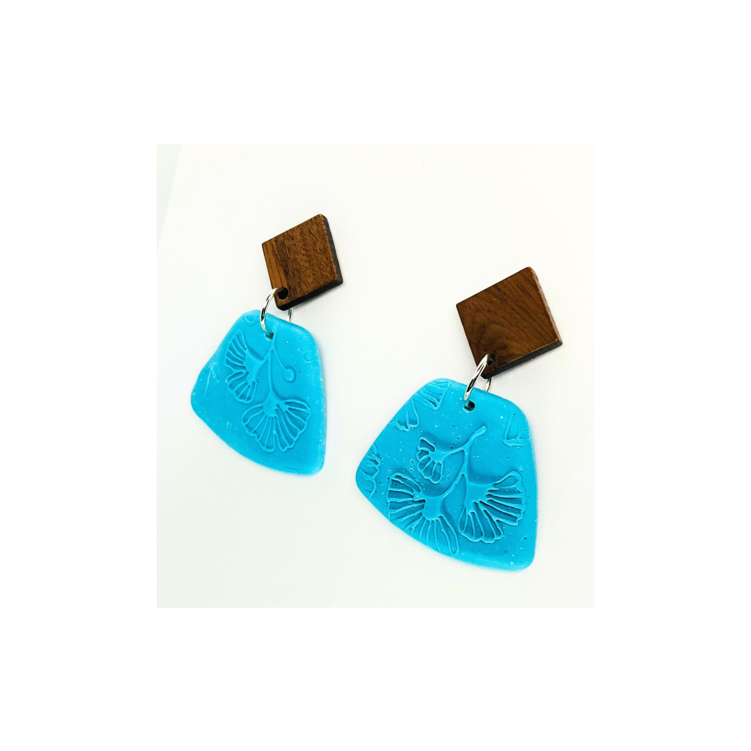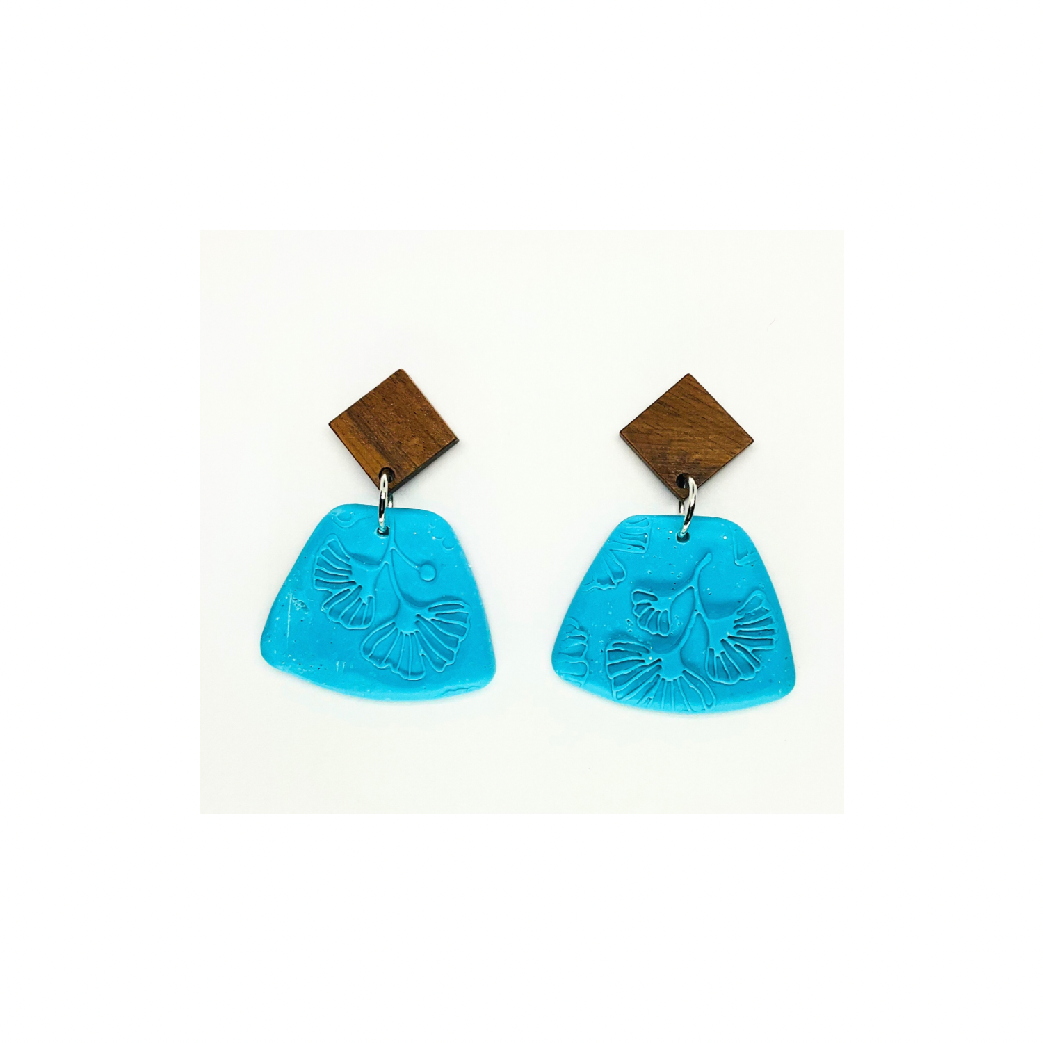 Turquoise Blue Leaf with Wood Stud Dangle Earring - Unique Design Earrings Featuring Leaf Motif and Wooden Accent