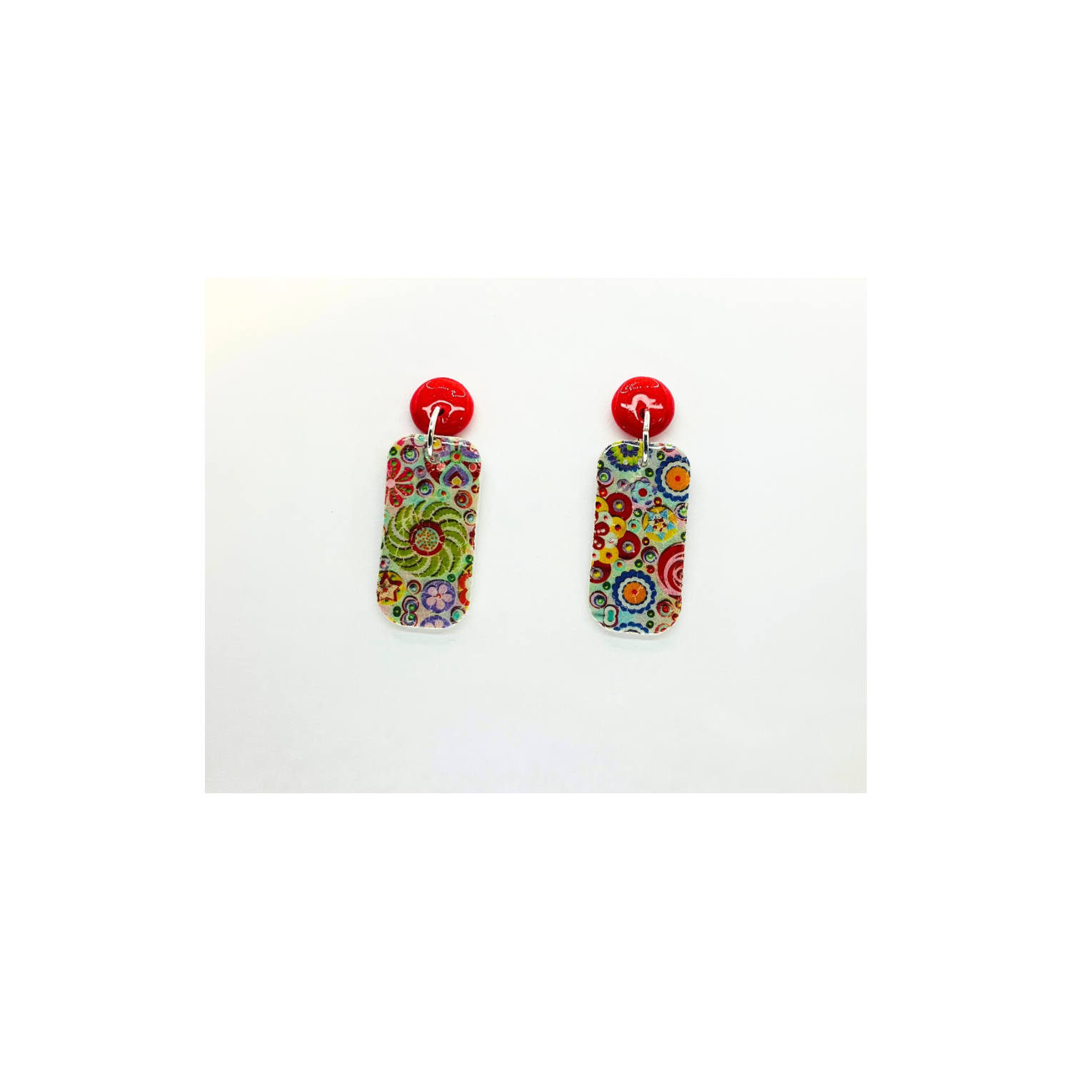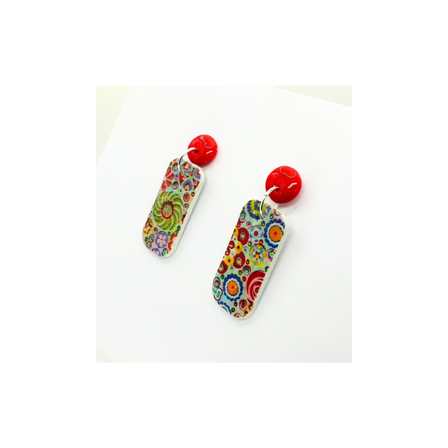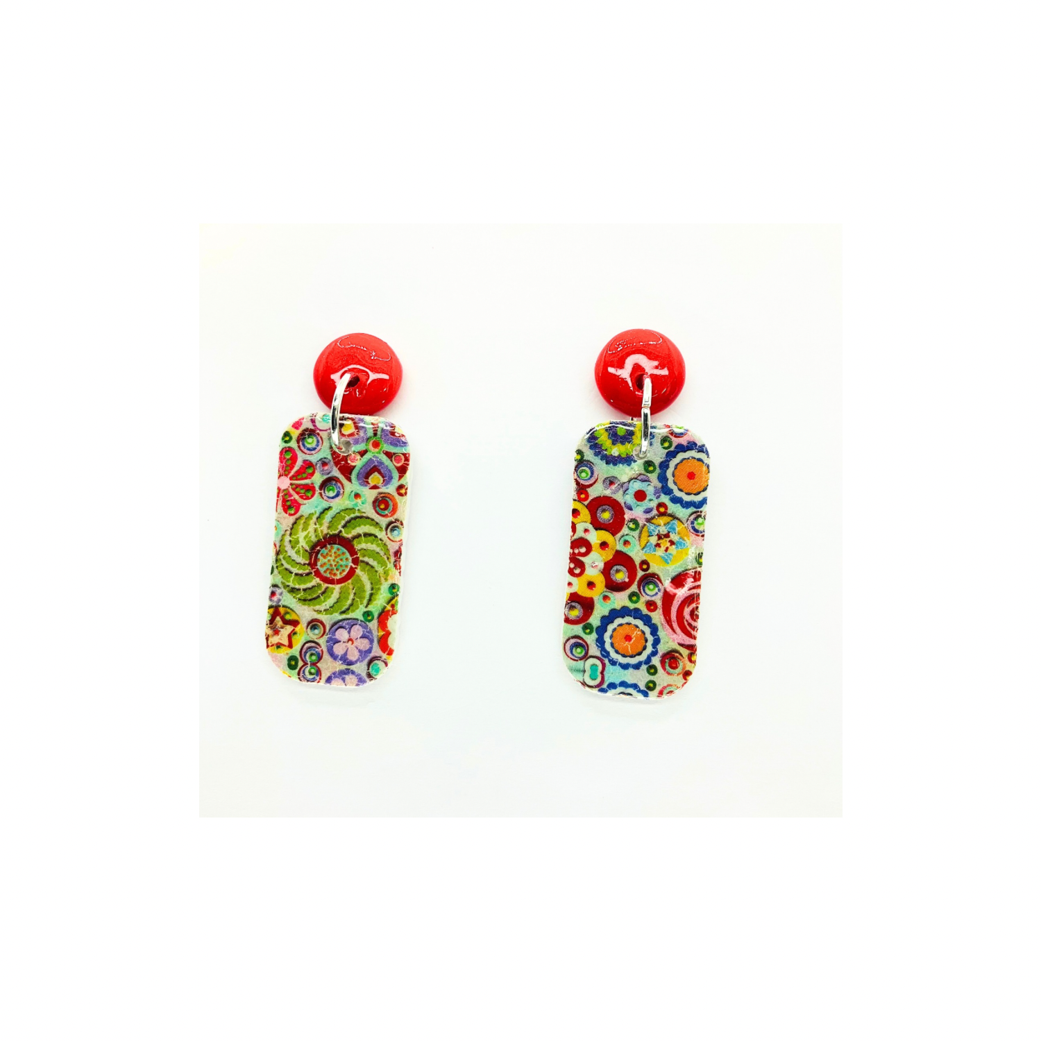 These whimsical red and green rectangle dangle earrings with red button studs are a fun addition to any festive outfit. They are ideal for adding a touch of color and joy to your look. π¨π