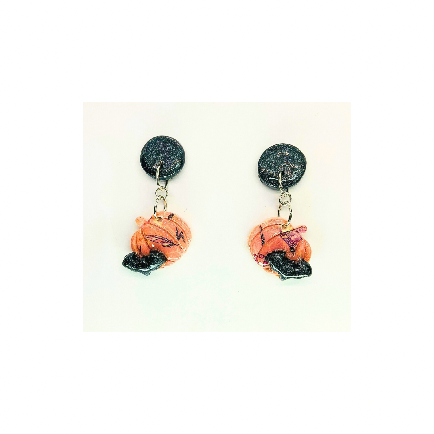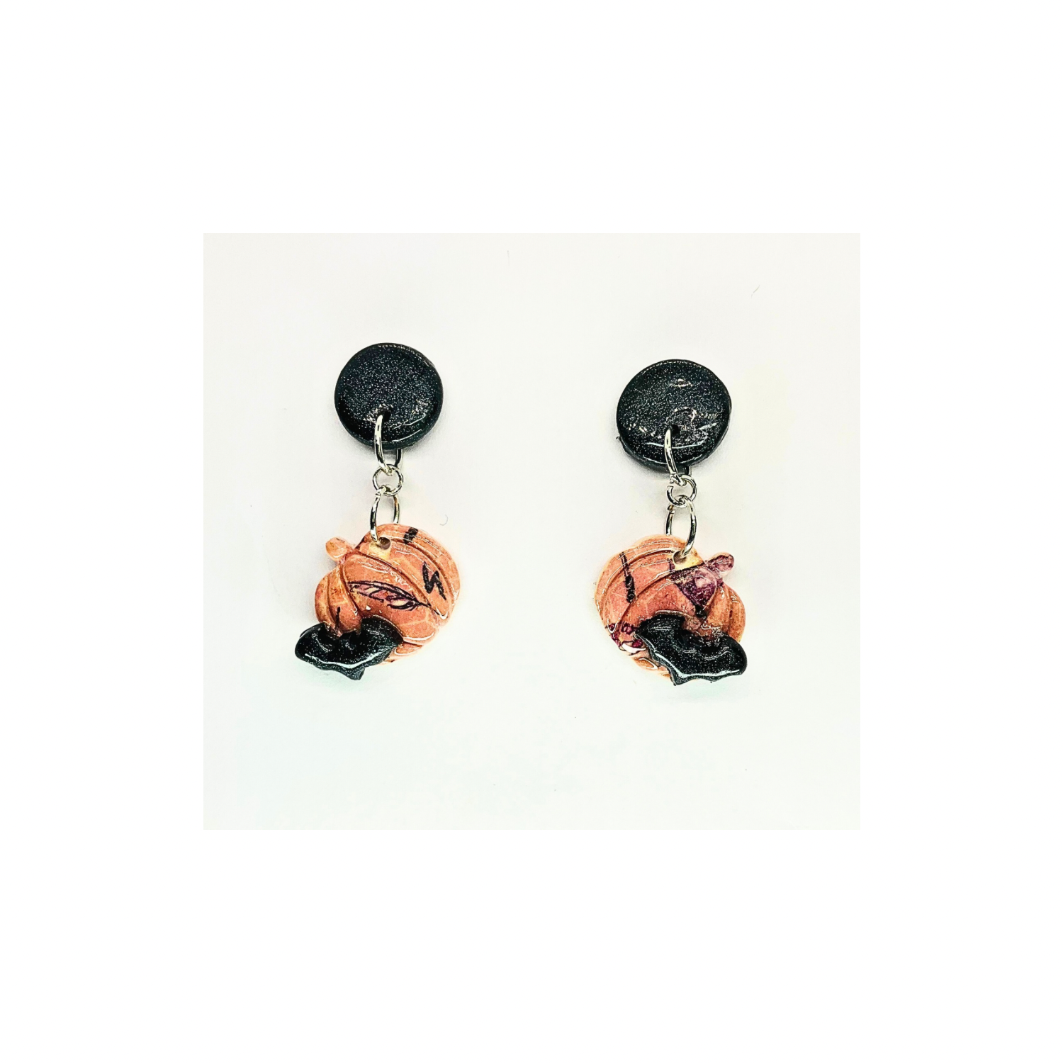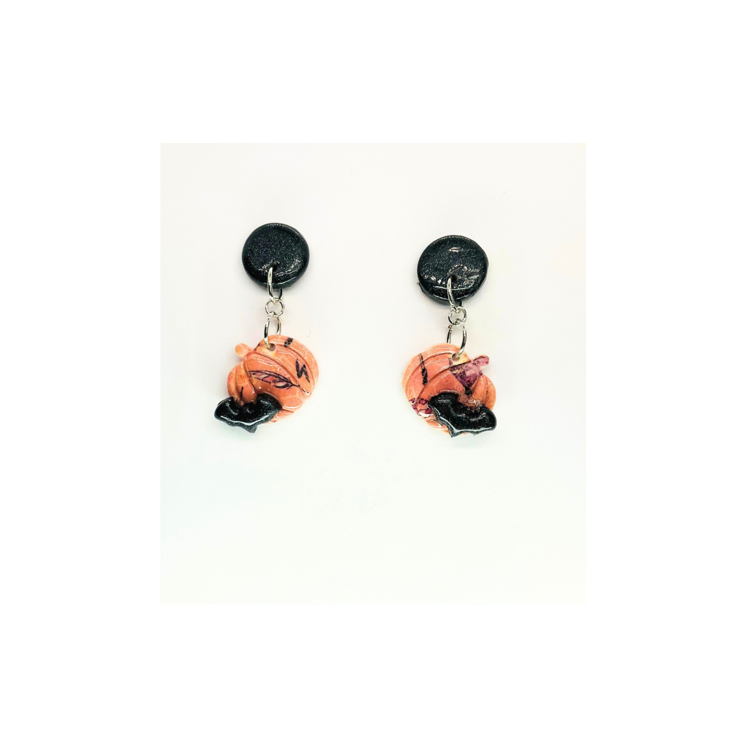 π Wizard Collection Pink Pumpkin with Bat Stud Earrings π