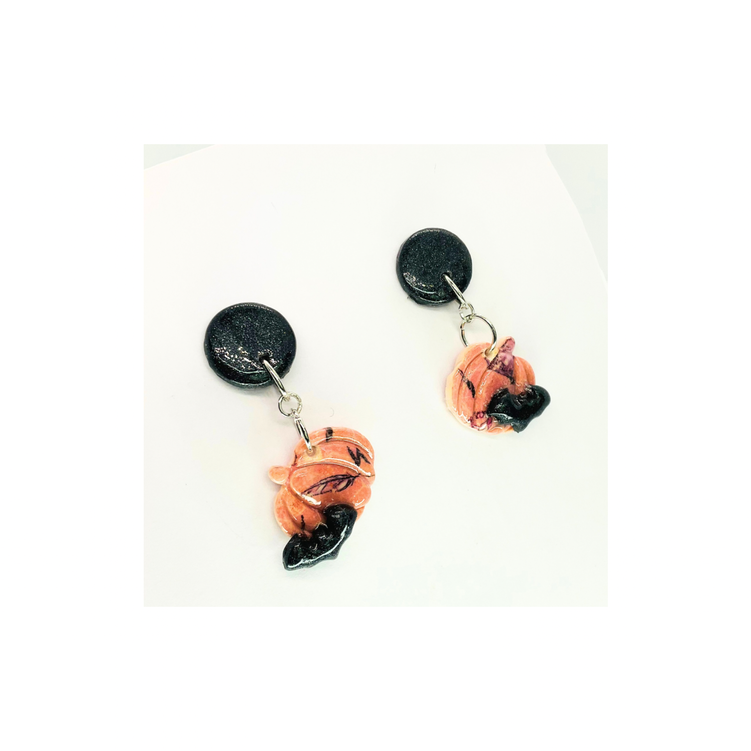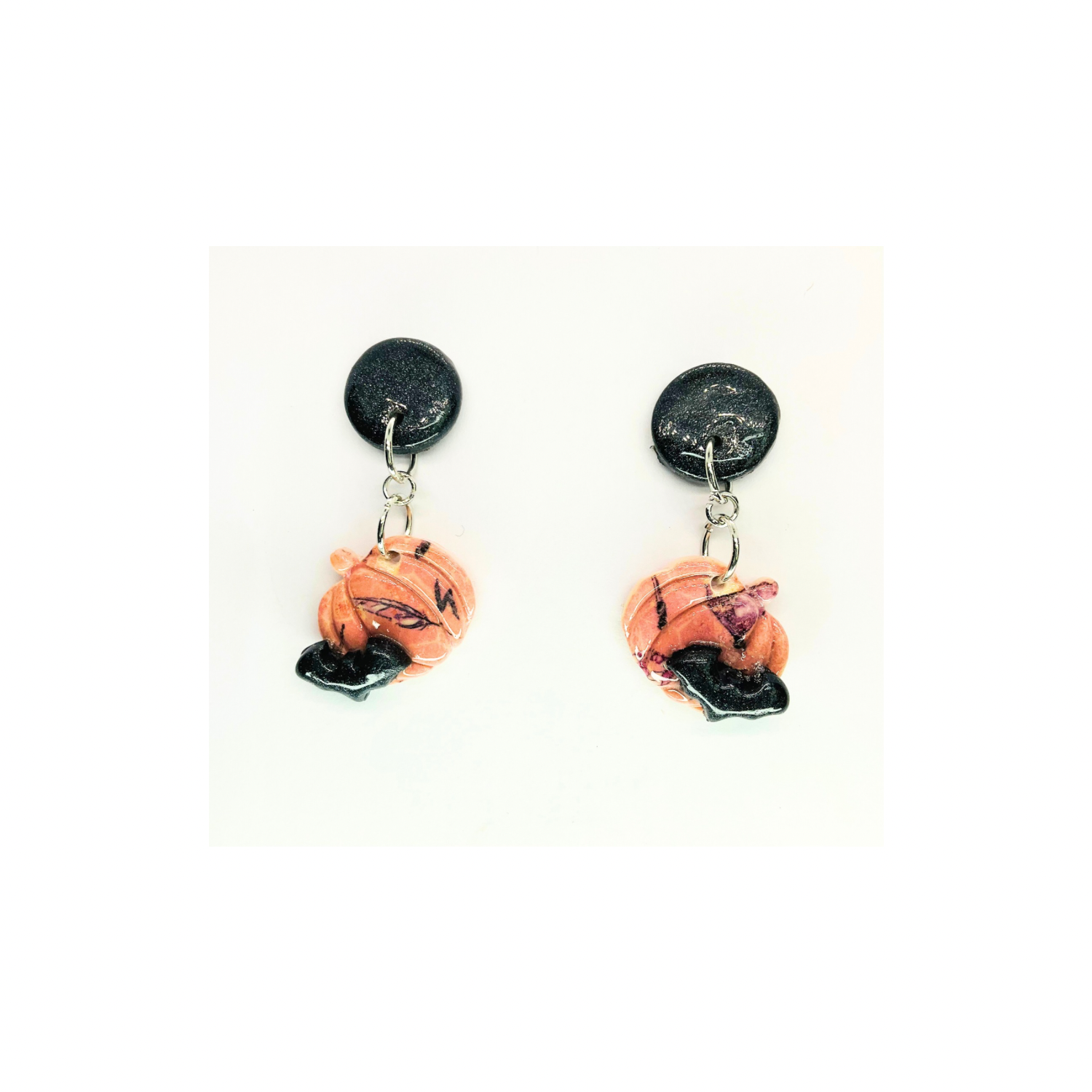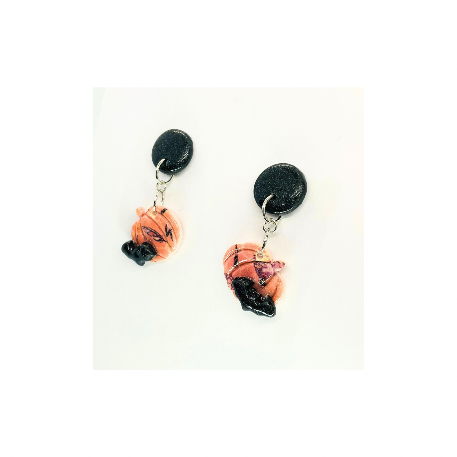 - These earrings feature a charming pink pumpkin design, perfect for adding a touch of whimsy to any outfit.