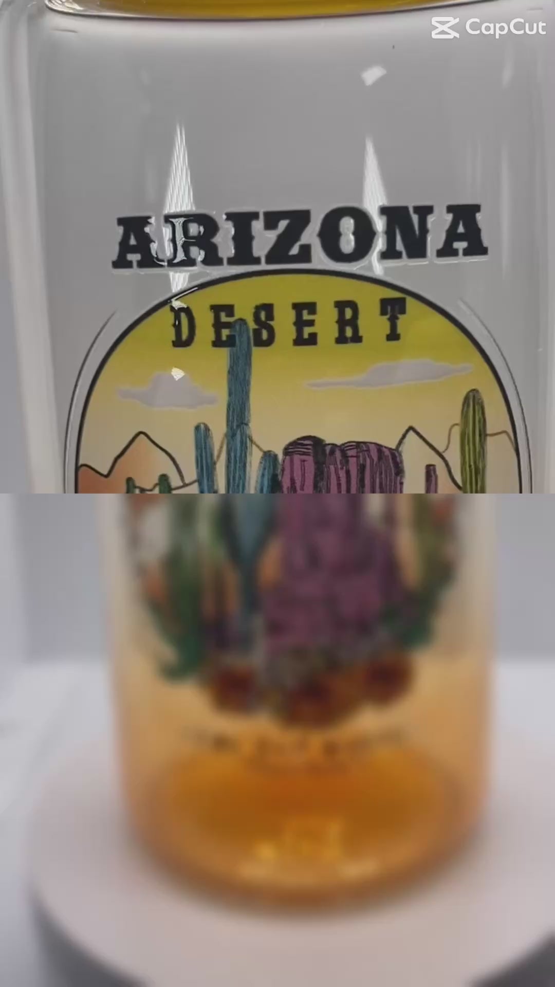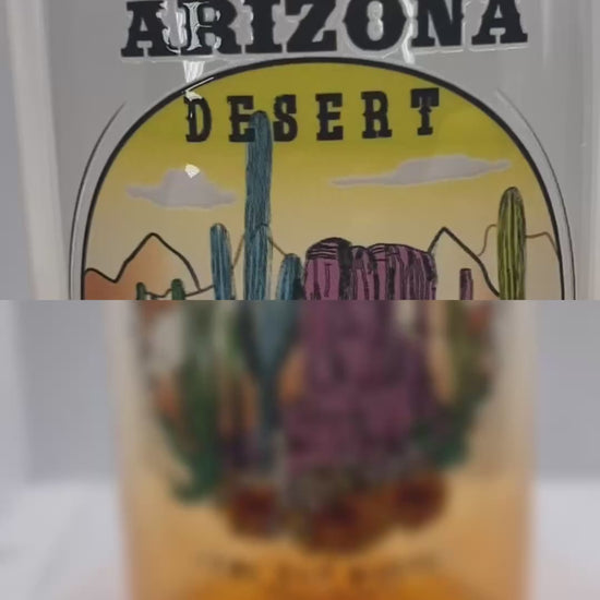 Yellow gradient 16 ounce glass tumbler with UV wrap decal says Arizona Desert.
